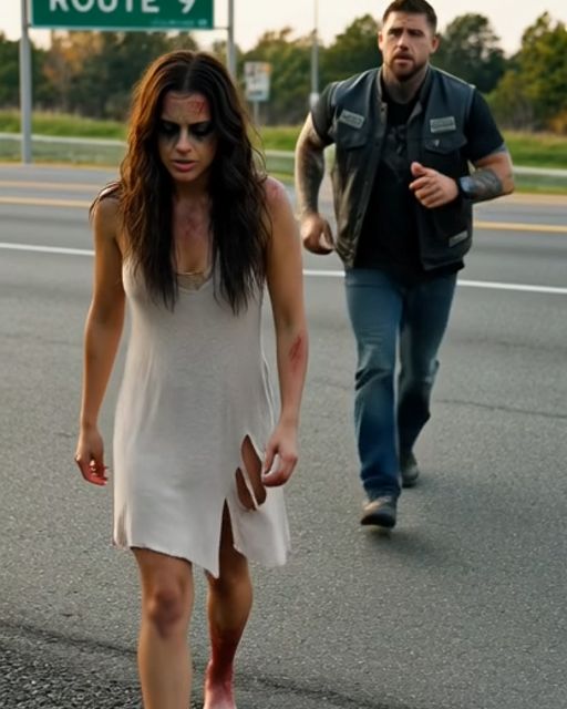 She was barefoot on the shoulder of Route 9, blood streaming down her face, her dress torn.