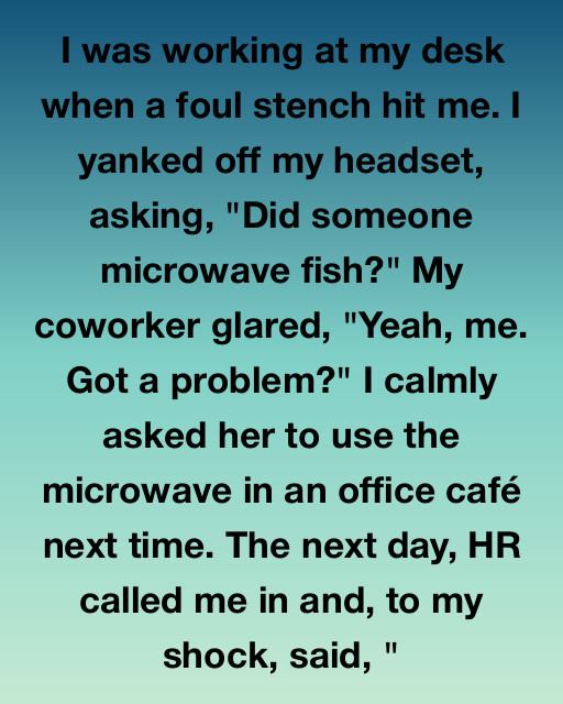 I was working at my desk when a foul stench hit me. I yanked off my headset, asking, “Did someone microwave fish?” My coworker glared, “Yeah, me. Got a problem?” I calmly asked her to use the microwave in the office café next time. The next day, HR called me in and, to my shock, said, “Brenda didn’t microwave fish. She microwaved a highly volatile medicinal compound, and your public request endangered the entire floor.”