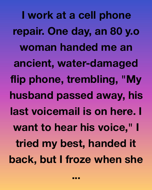 I work at a cell phone repair shop. One day, an 80 y.o woman handed me an ancient, water-damaged flip phone, trembling, “My husband passed away, his last voicemail is on here. I want to hear his voice,” I tried my best, handed it back, but I froze when she whispered, “Please, don’t tell me it’s gone forever.”
