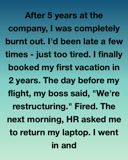 After 5 years at the company, I was completely burnt out. I’d been late a few times—just too tired. I finally booked my first vacation in 2 years. The day before my flight, my boss said, “We’re restructuring.” Fired. The next morning, HR asked me to return my laptop. I went in and found a detailed, personalized separation agreement on the desk, offering me a full year of severance, a new consulting title, and a company credit card with no limit.