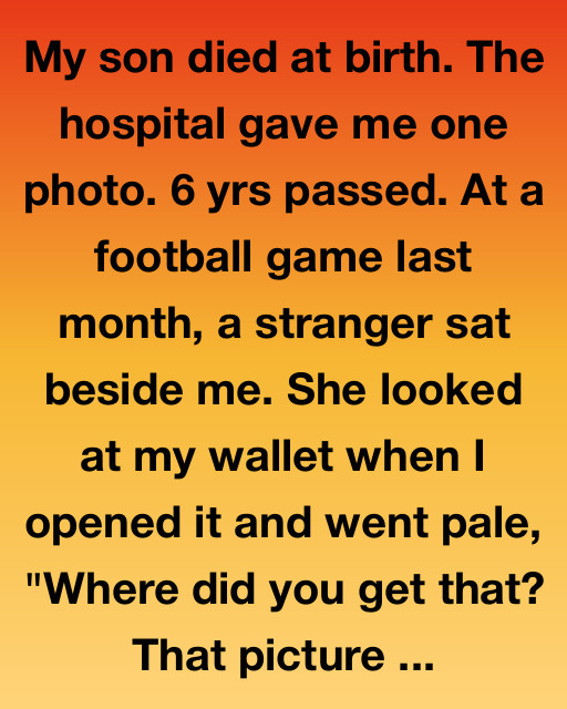 My son died at birth. The hospital gave me one photo. 6 yrs passed. At a football game last month, a stranger sat beside me. She looked at my wallet when I opened it and went pale, “Where did you get that? That picture is of my son, Julian.”