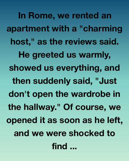 In Rome, we rented an apartment with a “charming host,” as the reviews said. He greeted us warmly, showed us everything, and then suddenly said, “Just don’t open the wardrobe in the hallway.” Of course, we opened it as soon as he left, and we were shocked to find that it wasn’t a wardrobe at all.