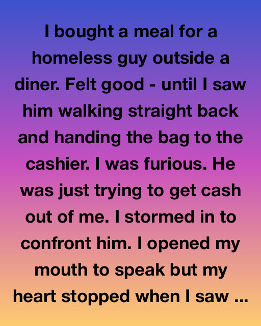 I bought a meal for a homeless guy outside a diner. Felt good – until I saw him walking straight back and handing the bag to the cashier. I was furious.