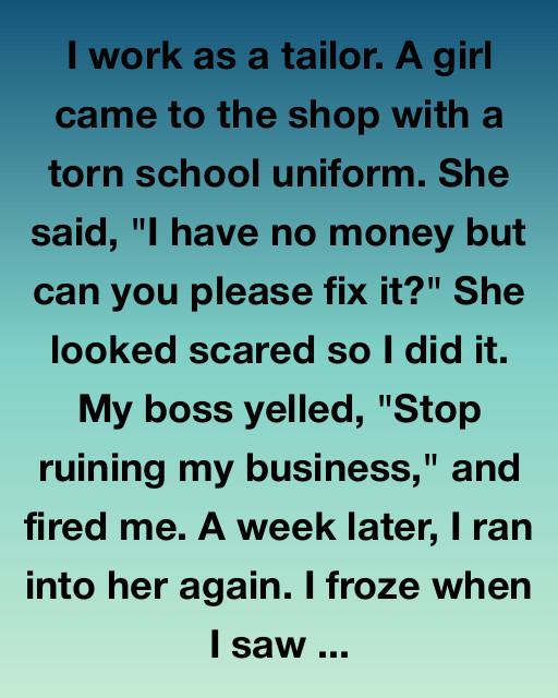 I am no longer just a tailor in a backroom. I am a man who found his purpose through a torn piece of fabric and a girl’s plea for help.