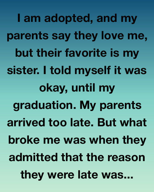 I am adopted, and my parents say they love me, but their favorite is my sister. I told myself it was okay until my graduation. My parents arrived too late.